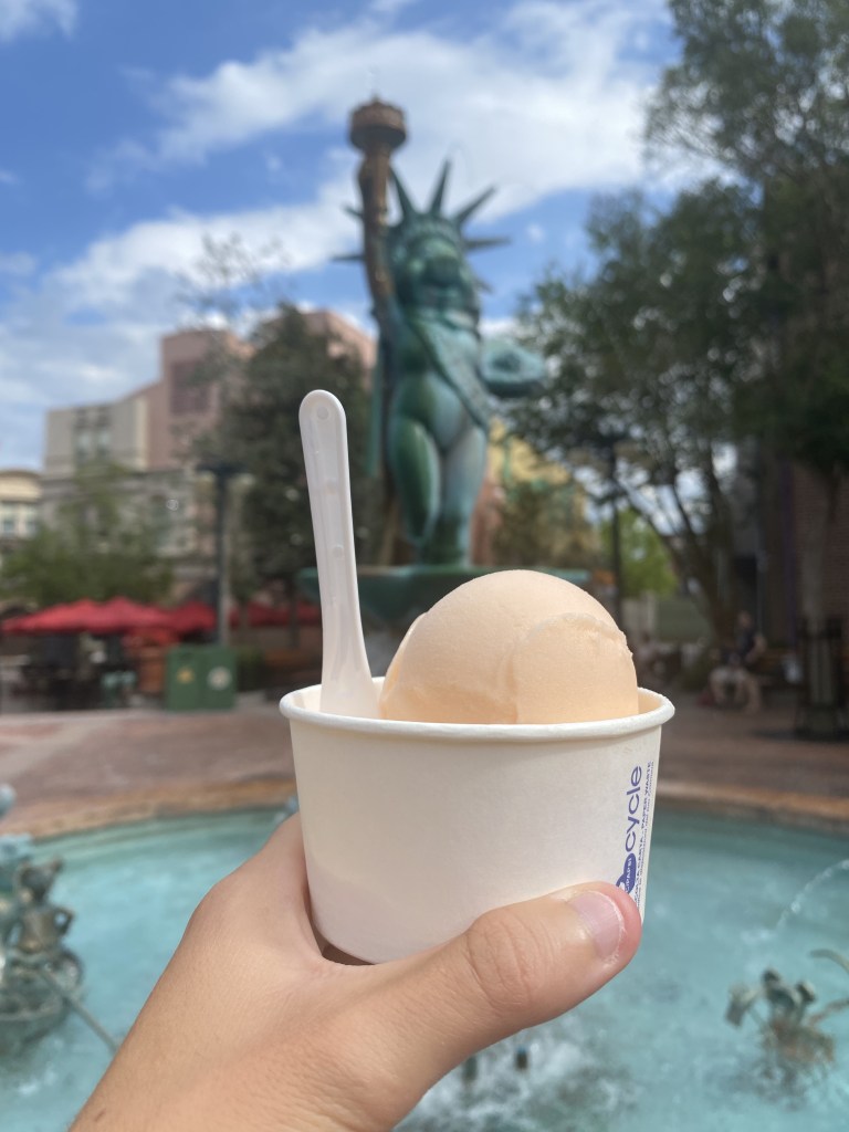 This is a great option if you are not only looking to cool off, but chill in a less crowded area for a minute or two. On your way to Muppet Vision 3D (honestly one of my least-favorite Disney attractions, sorry Muppet fans), you will find the charming Grand Avenue Gelato Cart serving a variety of delicious flavors. I chose to highlight this one due to its uniqueness and refreshing taste during the perpetually high temperatures. It is a combination of passion fruit, orange, and guava, hence the abbreviation POG, and is perfectly sweet. When I first tried this flavor, it was the Flavor of the Day, and it has since become a permanent addition. Since I’m in the mood for something chocolatey 99% of the time, I don’t splurge on this dessert too often although it is delicious.