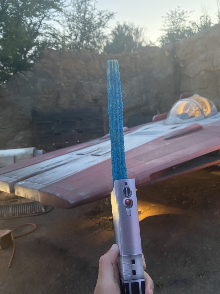 I really hate to hit you with a second inconsistently offered item, but sprinkles are my kryptonite. Disney churros are amazing and classic to begin with, so adding more sugar and tossing them in a cute cardboard holder makes them even better. Not pictured is the chocolate dipping sauce that I always suggest grabbing. I’m personally more of a Jedi girl which is why I went with the blue lightsaber instead of the red. Again, I didn’t buy it in Galaxy’s Edge, rather at the stand across from the Grand Avenue Gelato Cart right outside of the Muppets Courtyard. This sweet might be as high on my list as it is because I enjoyed it on May 4th, as in May the 4th Be With You, and let me tell you, Star Wars Day in Hollywood Studios is a WILD experience. These exclusive churros have also been offered on the premiere days of some of the new Disney + Star Wars series, so you may not have to hold out for the month of May for your chance to try these for yourself.