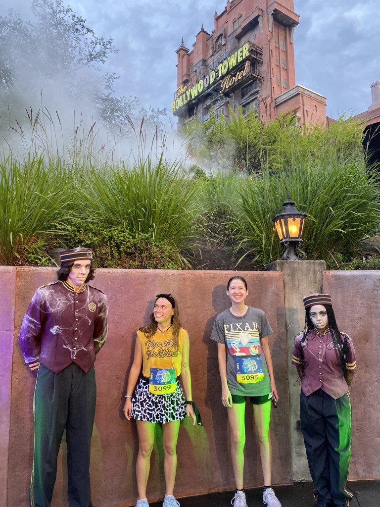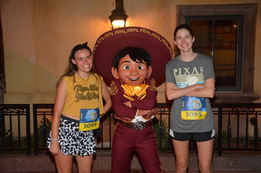 Also, to be honest, they should call it walkDisney instead of runDisney; my friend and I were some of the only ones running throughout the entire race. And I don’t blame anybody for that, because athleticism is not the name of this game. When you’re not high-fiving characters, you’re taking in the views of the parks before the sun even rises and the crowds fill them to the brim, which is such a rare and amazing experience. My race course went around the World Showcase, Galaxy’s Edge, Toy Story Land, and the rest of Epcot and Hollywood Studios, and it was great to stop and take pictures and videos of those iconic sights at dawn. You’re also singing along to your favorite songs and catching the best scenes from Disney and Pixar movies on the massive screens placed along the trail. There’s not a moment to even process the fact that you’re running!