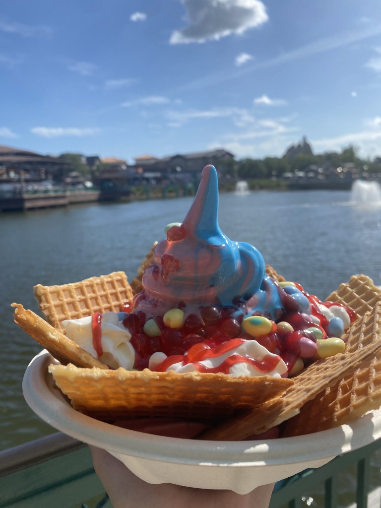 The greatest feature of Swirls on the Water is the variety in not only the flavors it offers, but the presentation of the Dole Whip itself. Classic pineapple is always available, and the alternative options are constantly changing which is extremely different from the consistency of the parks. You can find raspberry, strawberry, cheesecake, and many others depending on when you are visiting, with the opportunity to swirl some of them together.